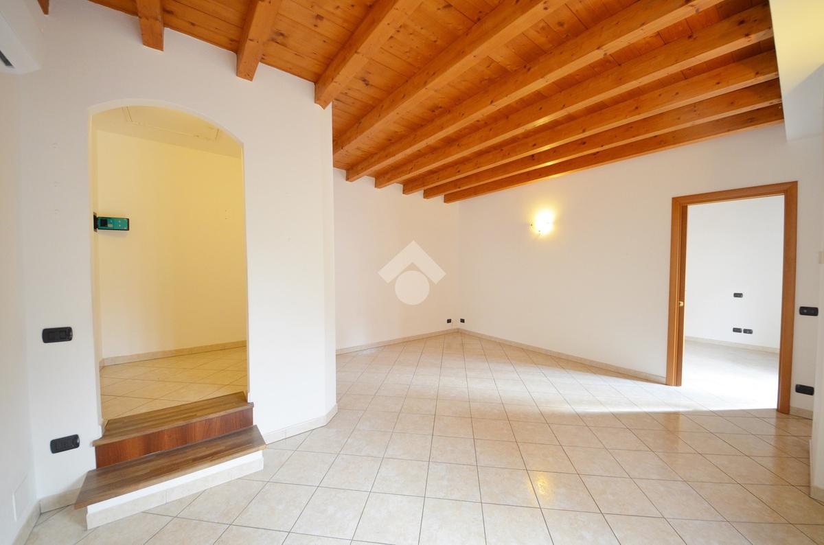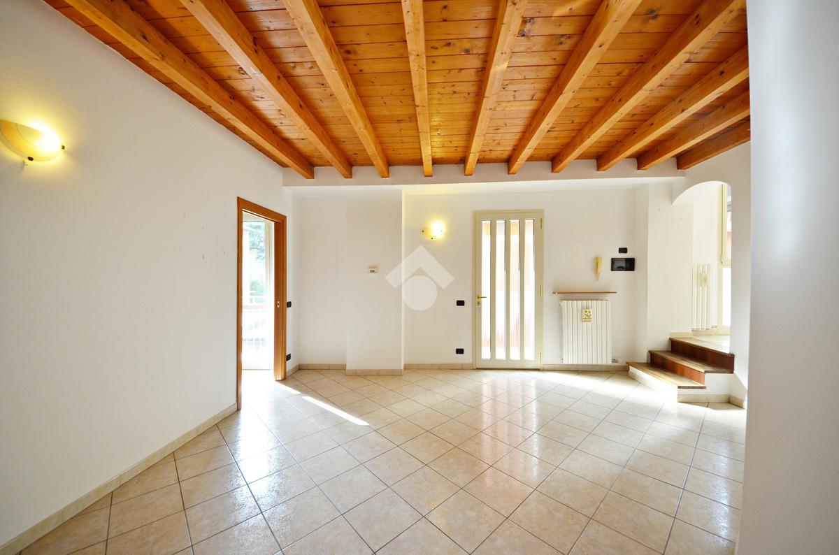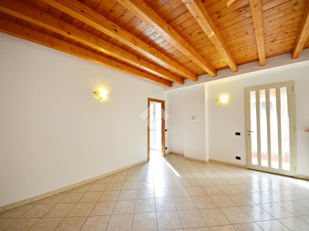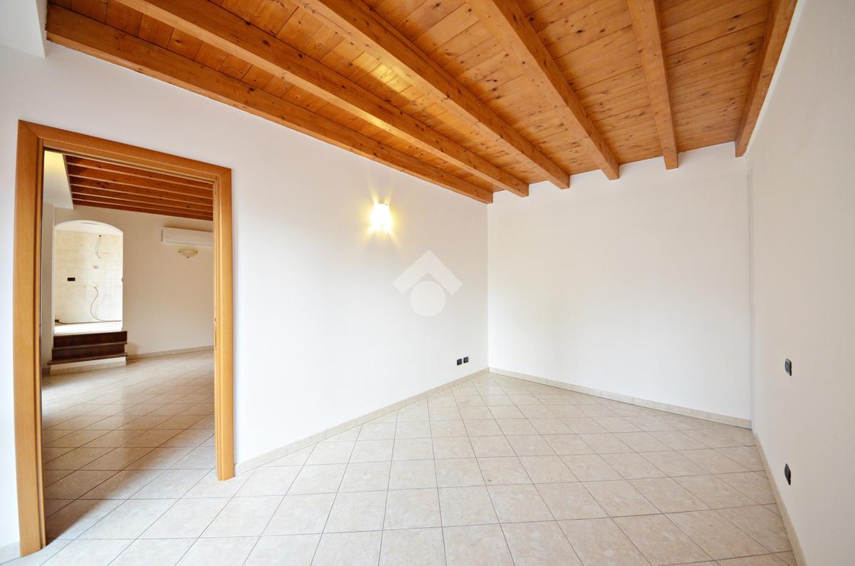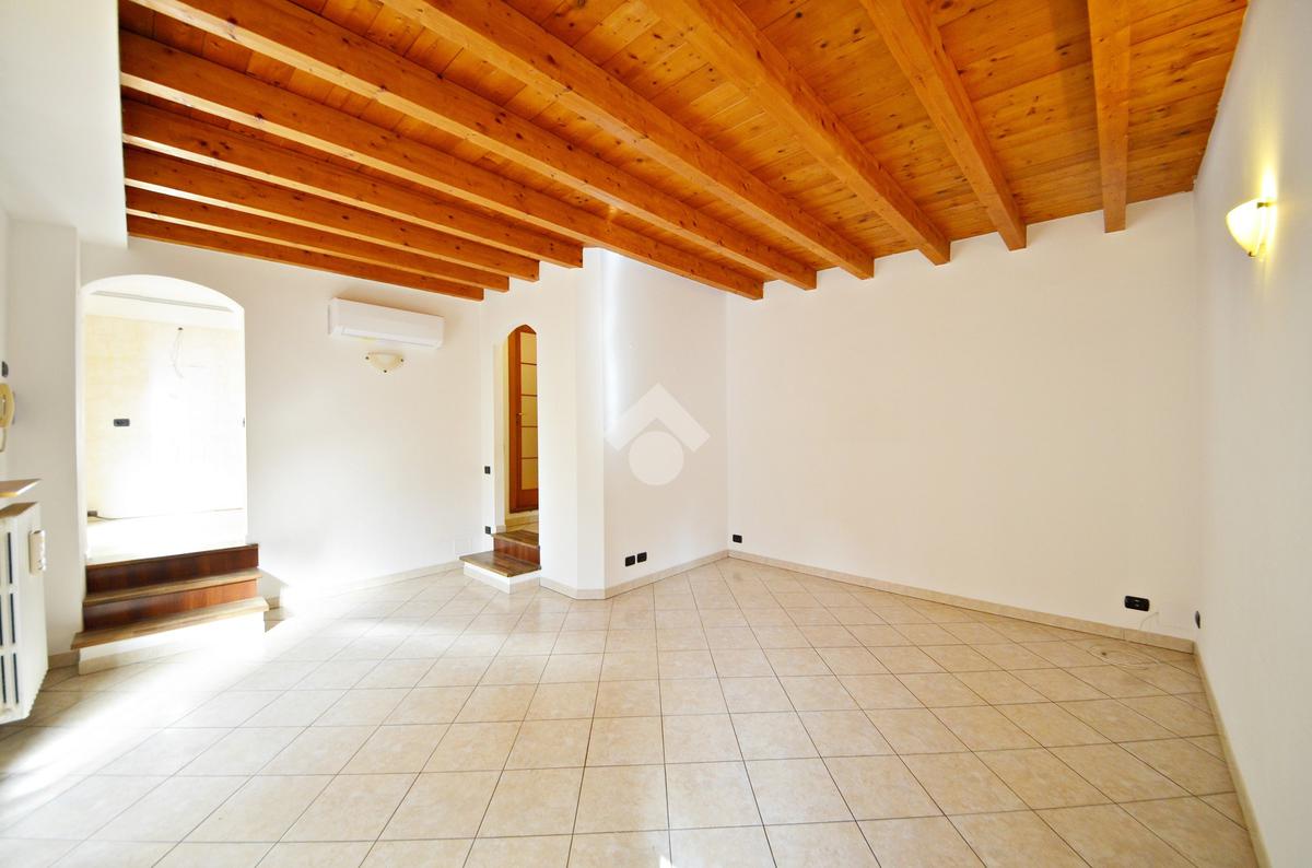 Affacciato sul cortile interno, silenzioso e curato, è stato oggetto di una ridistribuzione degli spazi e ristrutturazione, abbellito dalle travi a vista che lo rendono ancora più accogliente anche grazie alla luminosità data dall'esposizione a sud.
