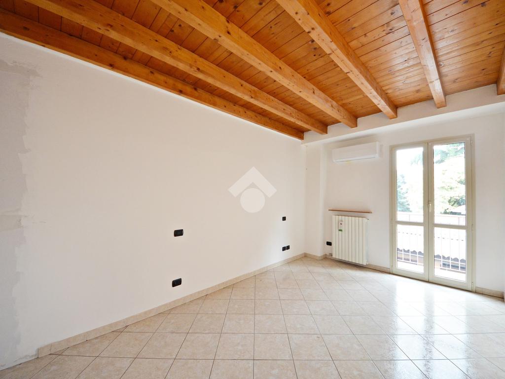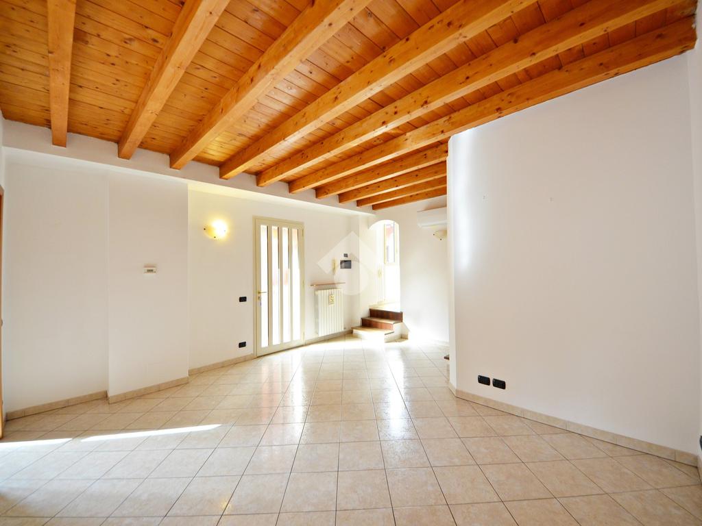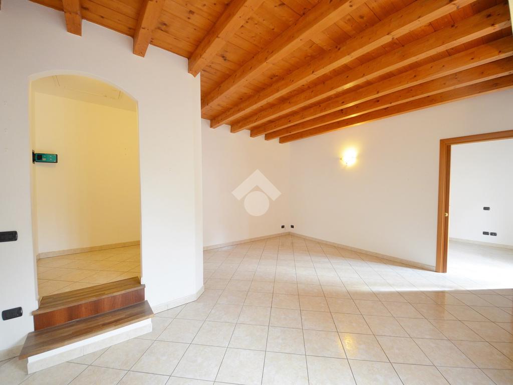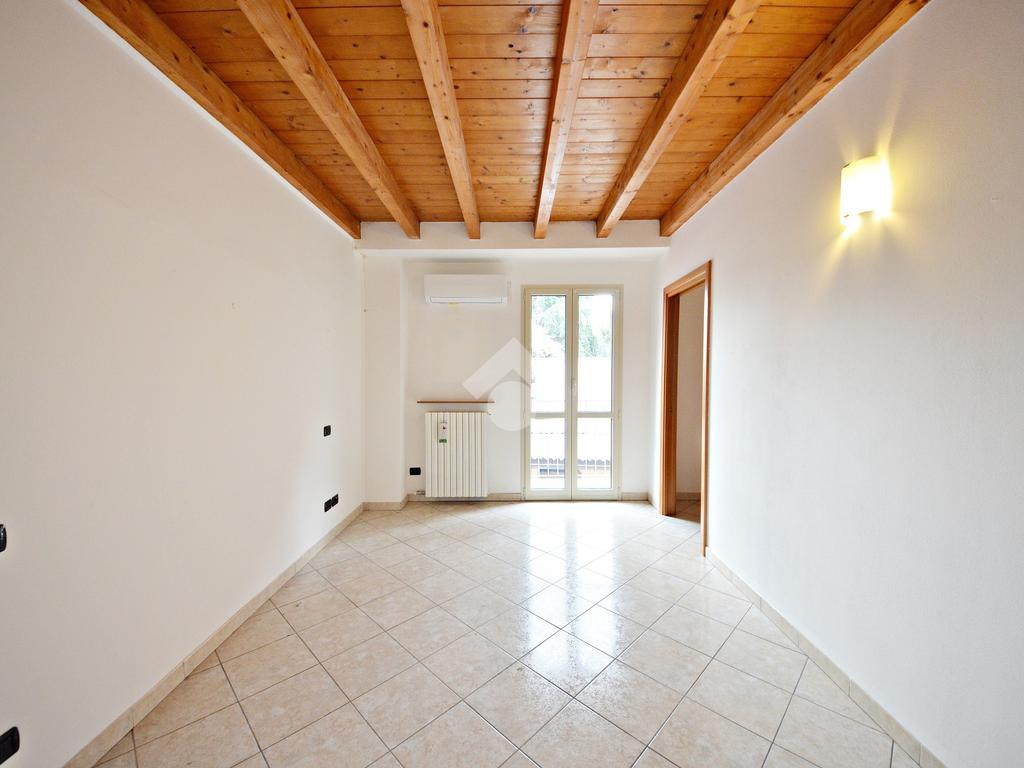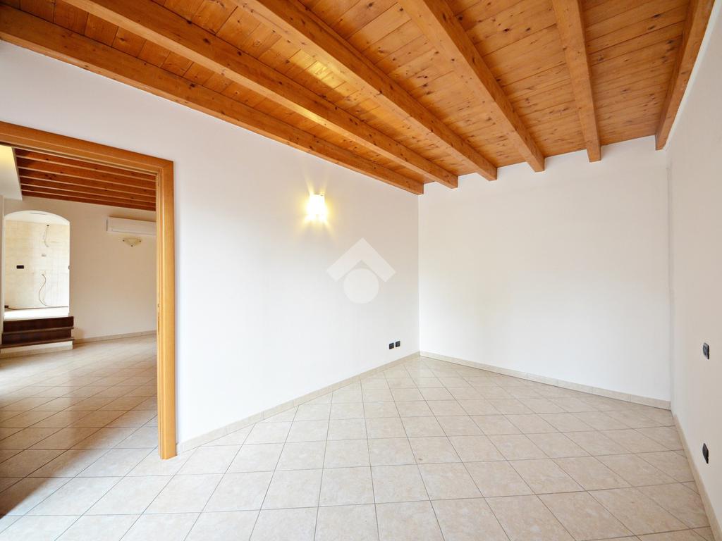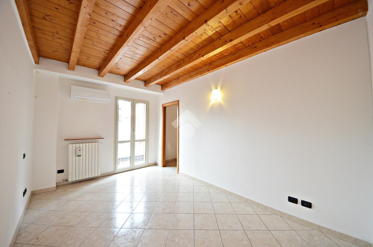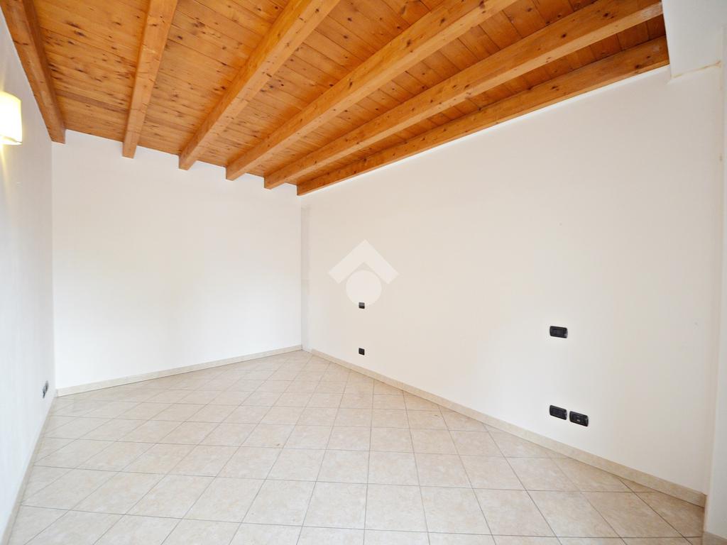 Affacciato sul cortile interno, silenzioso e curato, è stato oggetto di una ridistribuzione degli spazi e ristrutturazione, abbellito dalle travi a vista che lo rendono ancora più accogliente anche grazie alla luminosità data dall'esposizione a sud.