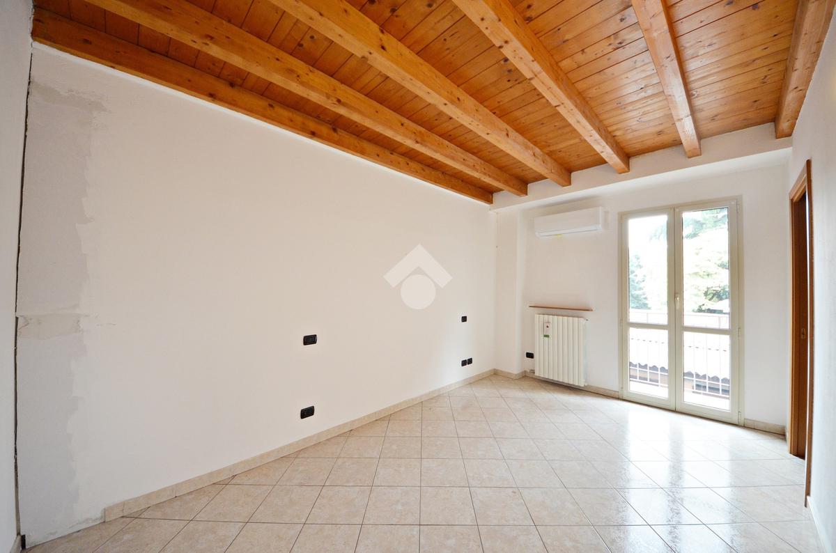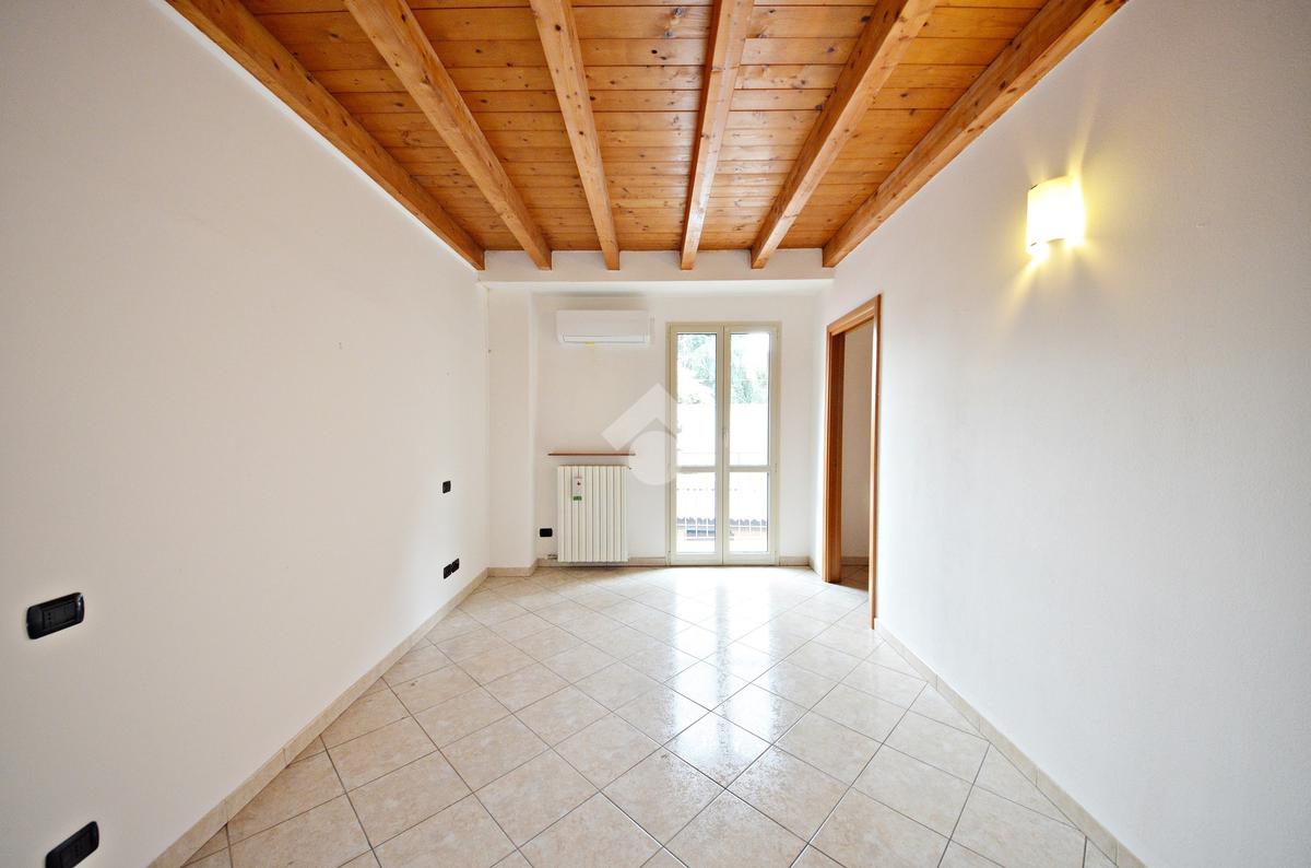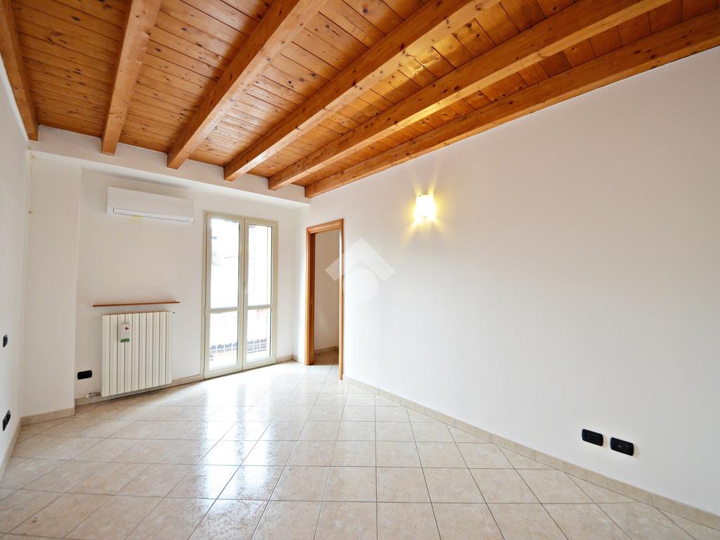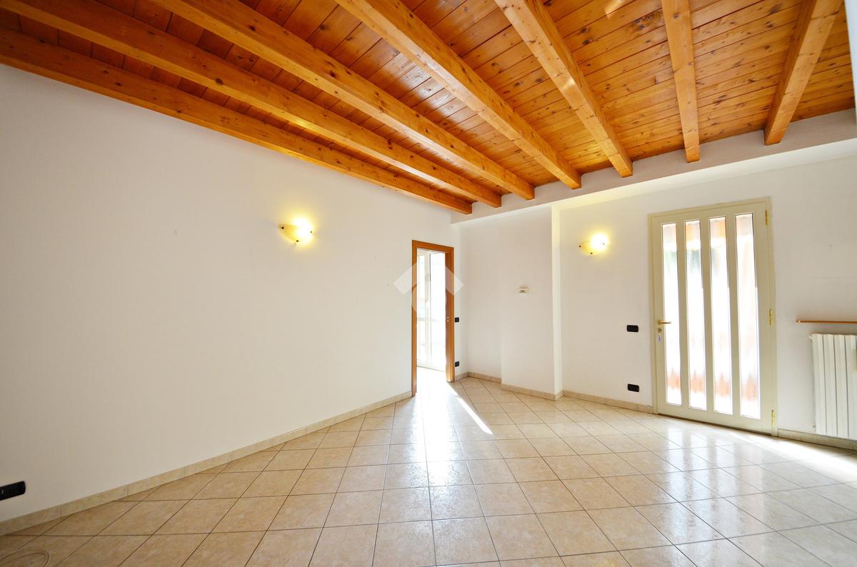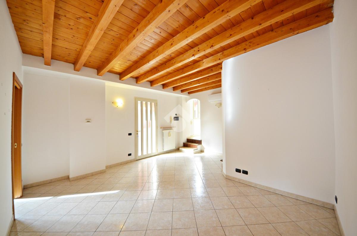 Affacciato sul cortile interno, silenzioso e curato, è stato oggetto di una ridistribuzione degli spazi e ristrutturazione, abbellito dalle travi a vista che lo rendono ancora più accogliente anche grazie alla luminosità data dall'esposizione a sud.