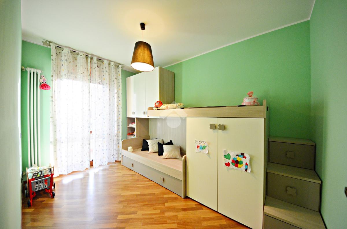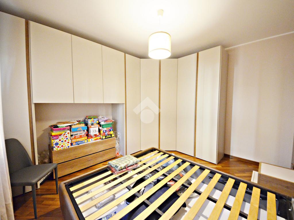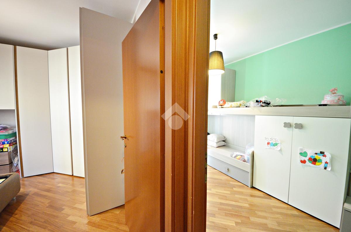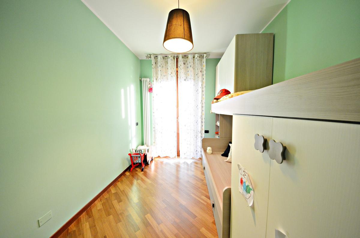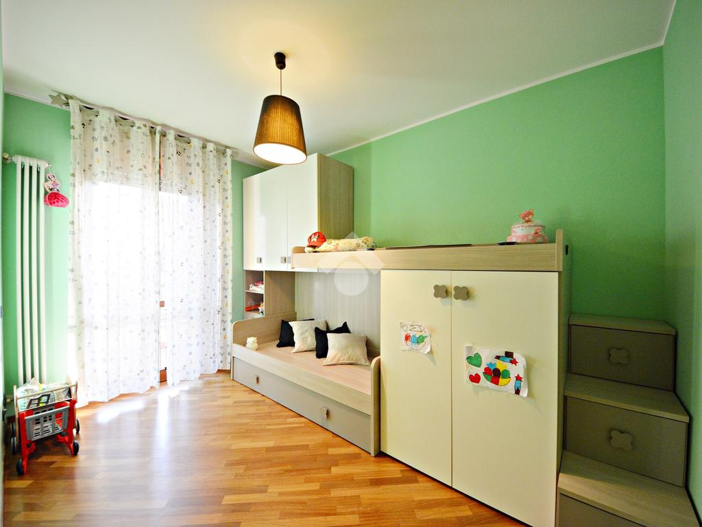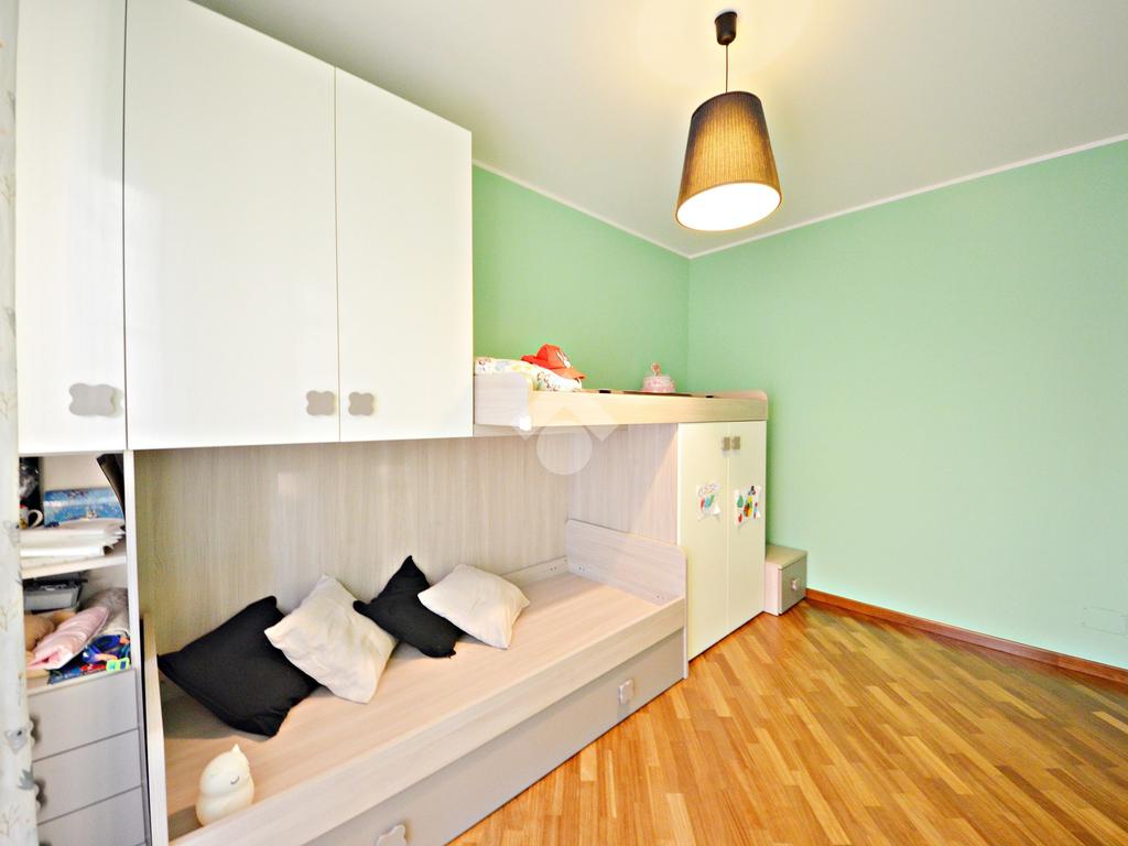 Il disimpegno poi conduce alla zona notte composta dalla camera da letto matrimoniale, la cameretta con un comodo balconcino e i due bagni di cui uno finestrato.